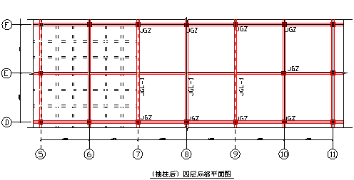 2.部分(受损)柱做湿式外包钢加固工艺加固,以提高轴压比。