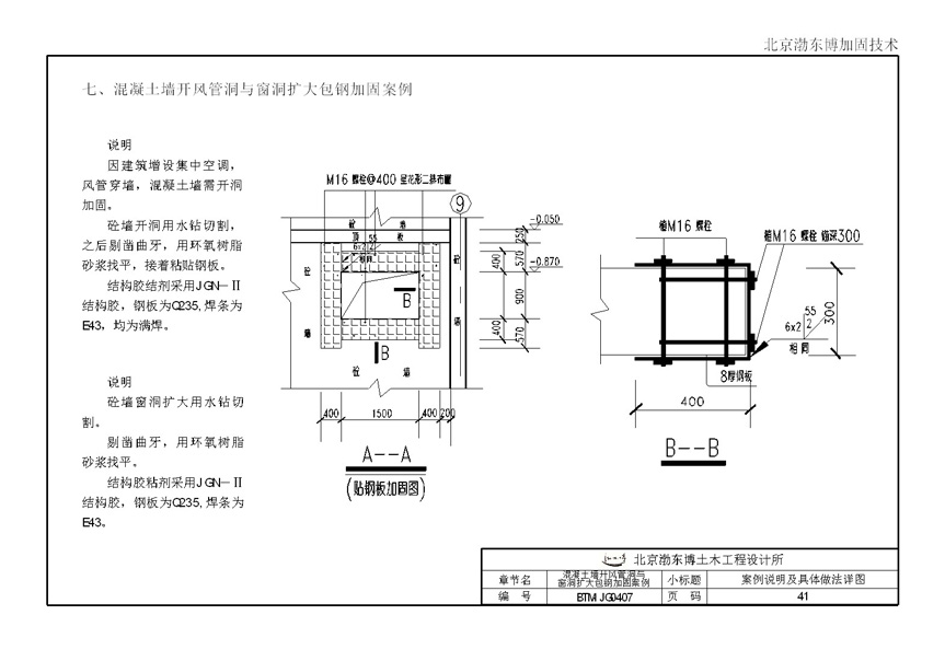 混凝土墙开风管洞与窗洞扩大包钢加固案例